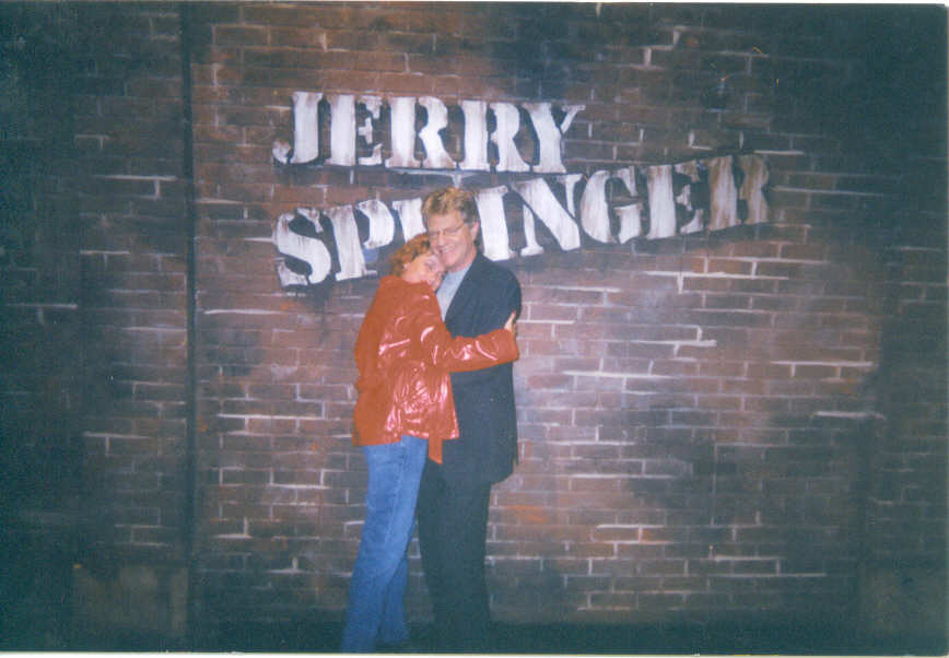 Zoranna and I rushed to the building where the studio was and couldn’t figure out how to get into the building from the parking garage. Well this guy came out a back door and was standing there smoking a cigarette. So I walked over and starting asking him how we get in when I saw it… “OH MY GOD ZORANNA HE”S WITH JERRY SPRINGER” This guy was a young hottie and it didn’t hurt I was pretty cute too 15 years ago (I had red hair, a half shirt, and a bright red pleather coat haha). So this guy takes us in the back way and we get in the line to get into the show. Our friends meet up with us and I start getting excited as Hell. After waiting about an hour our turn came. And the fucking woman told us that they were full!!!! “BUT WE HAVE TICKETS!!!” I sobbed. She said they send out more tickets than seats because not everyone shows up. I was about ready to cry then I saw the guy who let us in!!! I ran over to him and told him what happened. Of course I was near tears and holding onto his shirt as if it were a desperate situation. He asked me to wait and he would go see what was up. He comes back after a few minutes and asked if we could come back for the next show in about two hours. Hell yes we could!